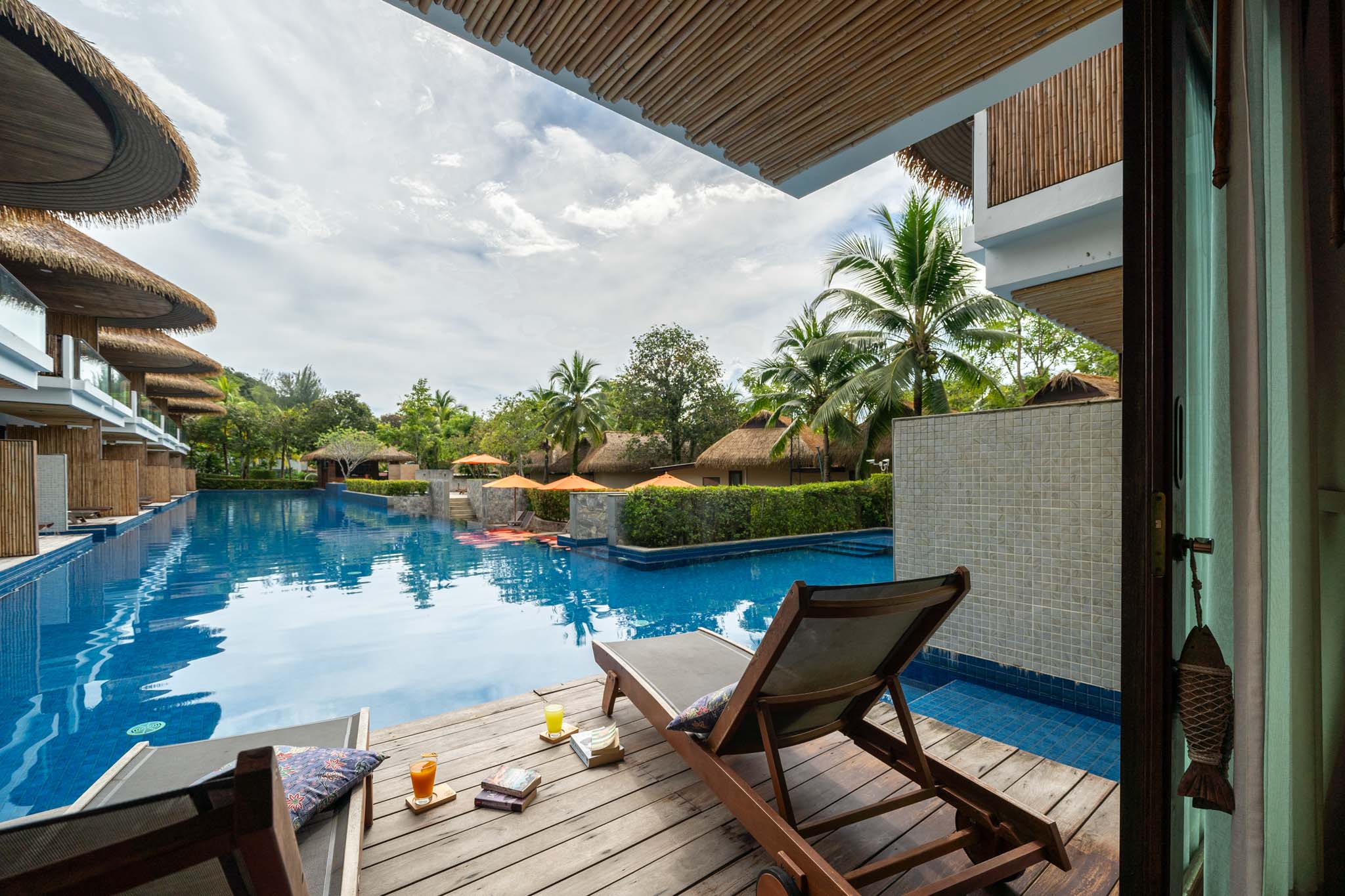 Deluxe Pool Access rooms is provide 35 square-metre with a private terrace accessing to the swimming pool. Unwind on your private terrace and relax by the pool against the backdrop of the mountains.